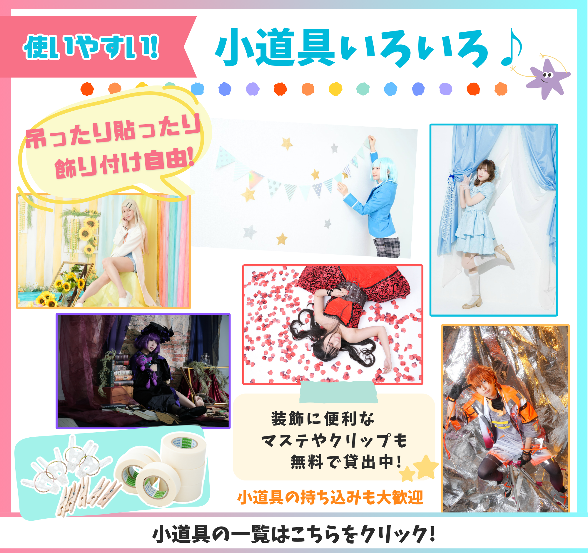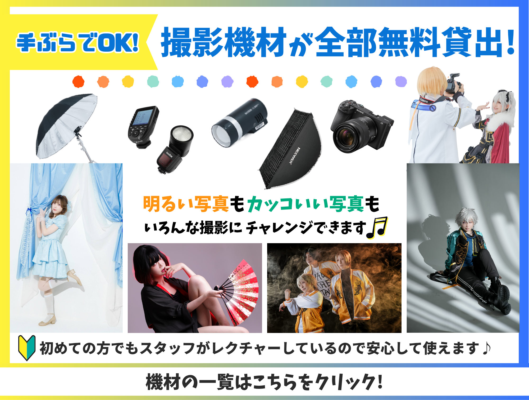 ・スタジオからの予約確定メールの返信をもって予約完了です。(メール不着に対する対策の為)