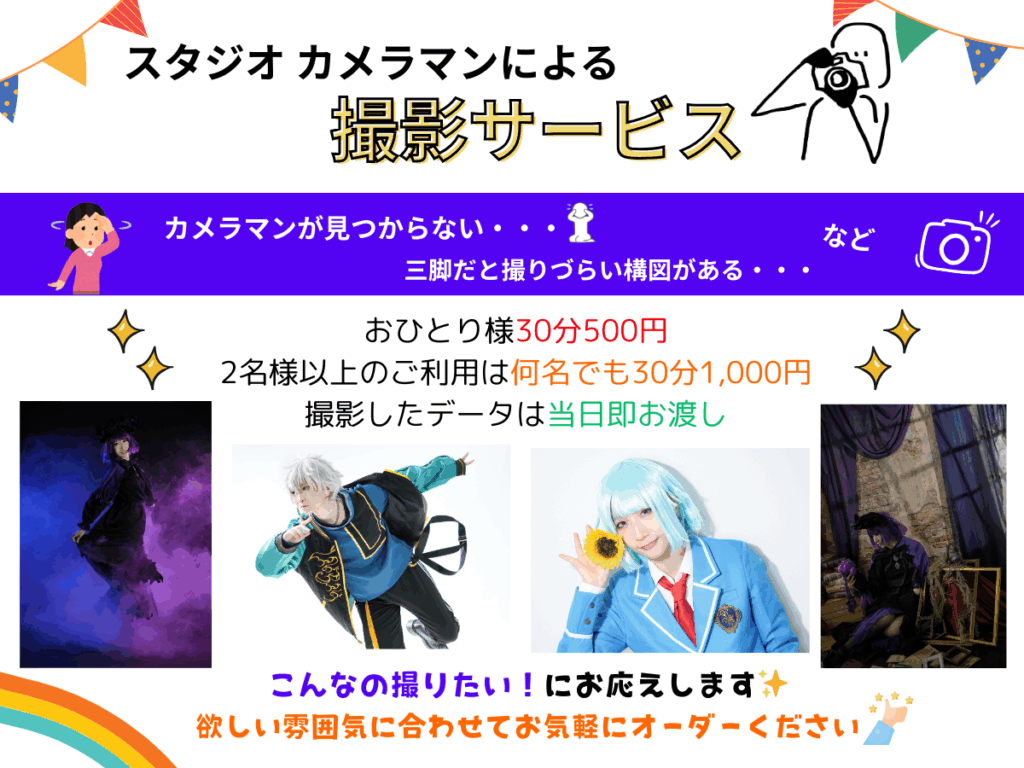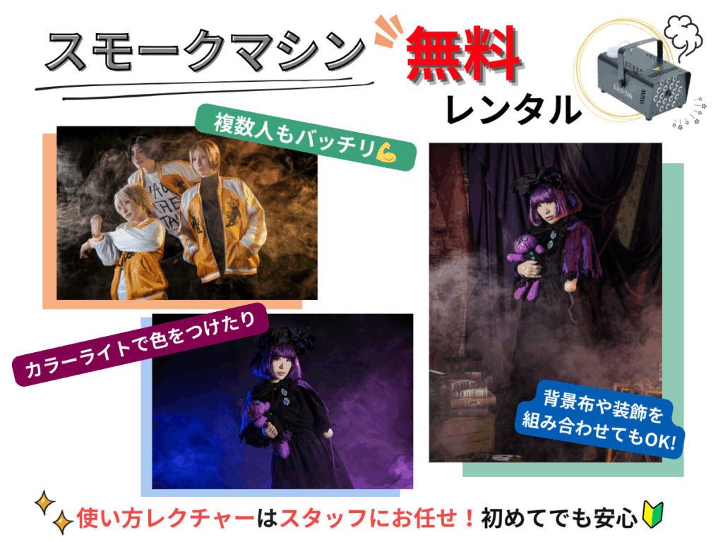 〈オプション〉 撮影サービスの利用希望:有(⚫︎時間程度)・無 スモークマシンレンタル:有・無 X、SNSアカウント(任意):