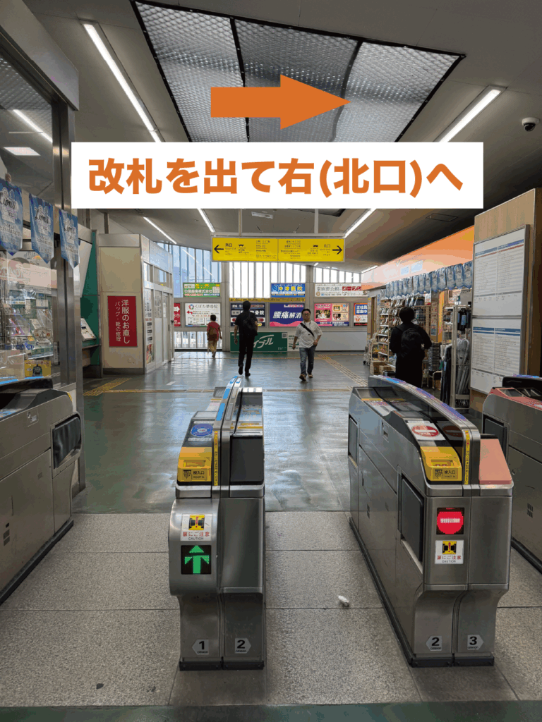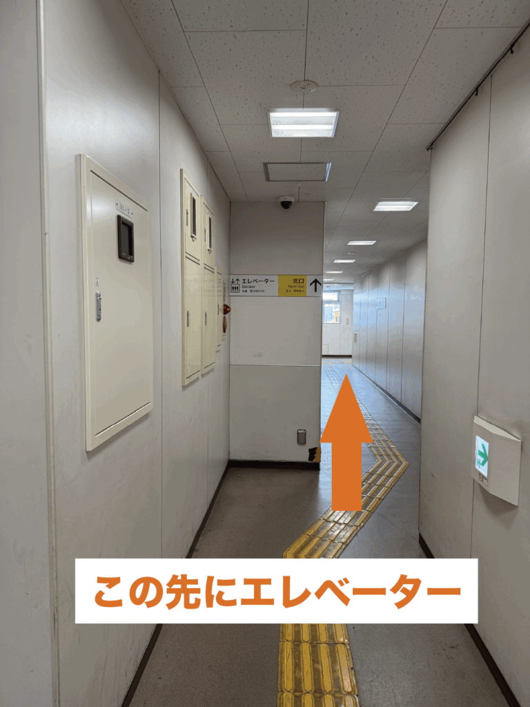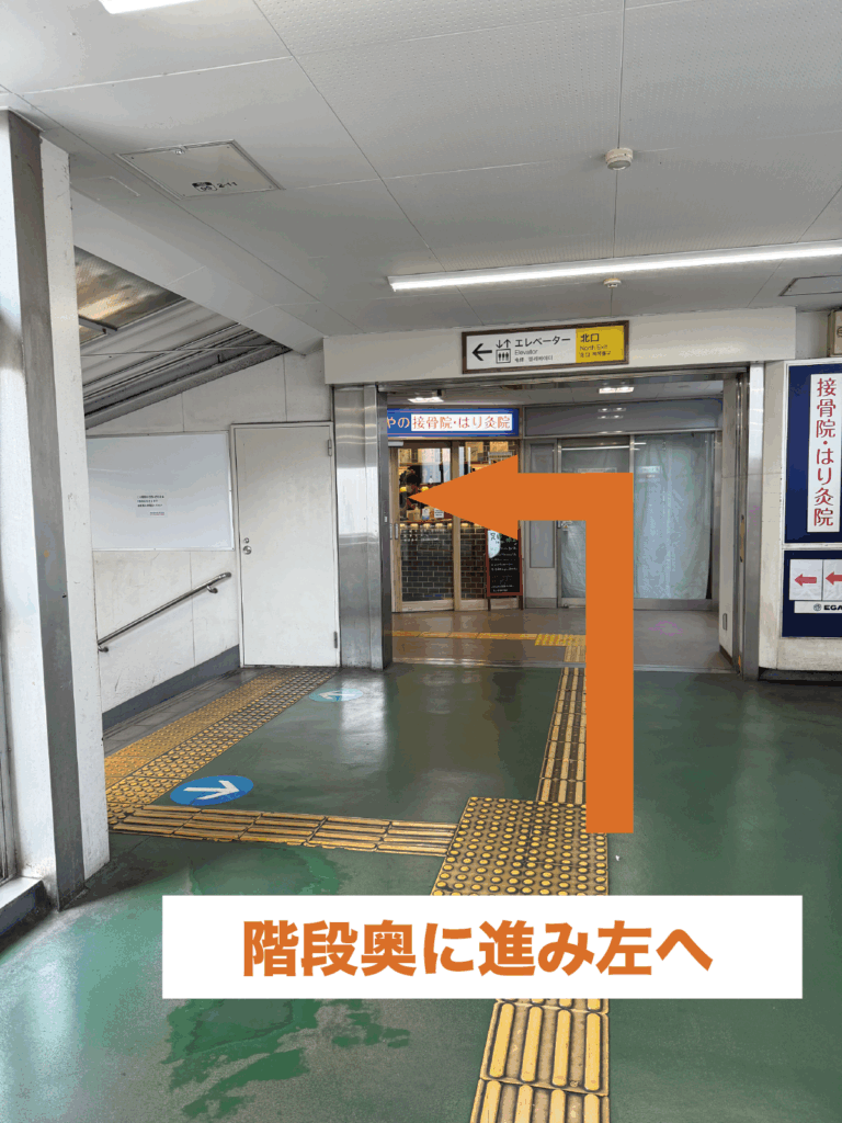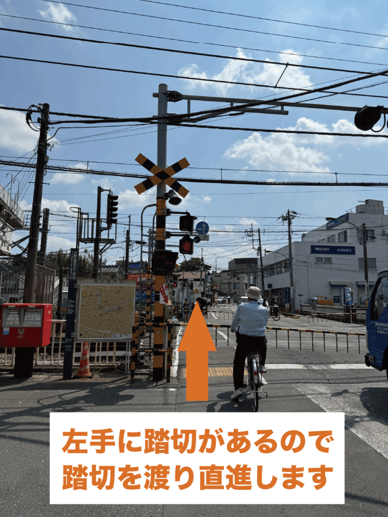2.階段奥に進み左へ(階段で降りる場合は降りたのち直進すると5の踏切に到着します。)