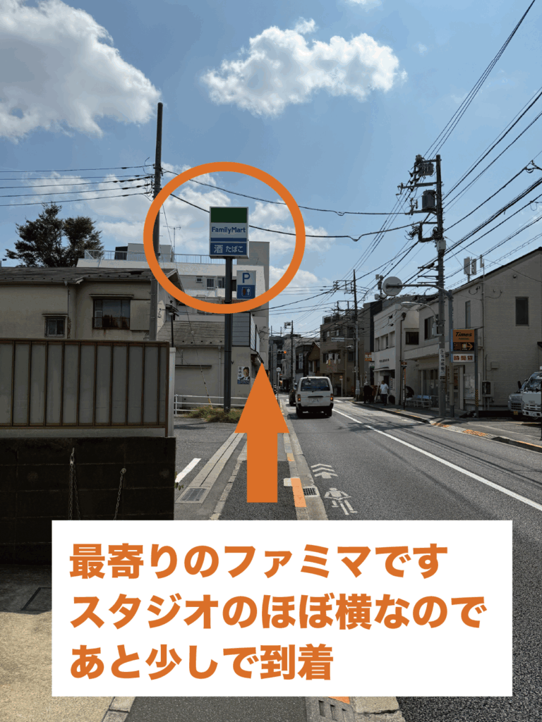 8.最寄りのファミマが見えればスタジオはすぐそこです。