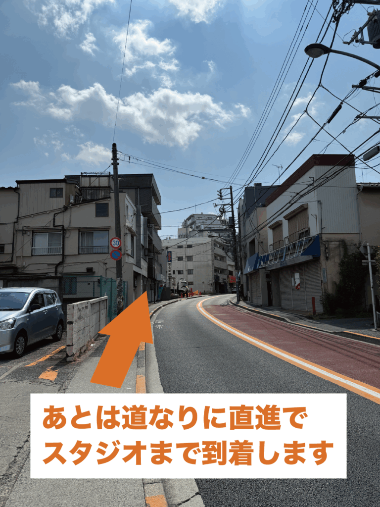 6.あとは道なりに直進でスタジオまで到着します。道が細くなるのでお気をつけてご通行ください。
