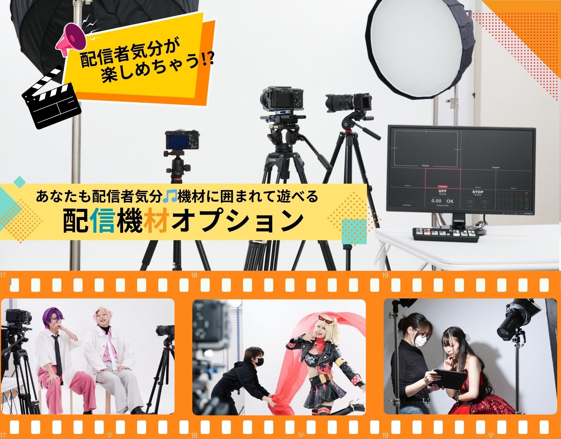 ・配信機材オプションは、ご利用日の3日前までの事前予約制となります。前日や当日はご対応できかねますので予めご了承ください。