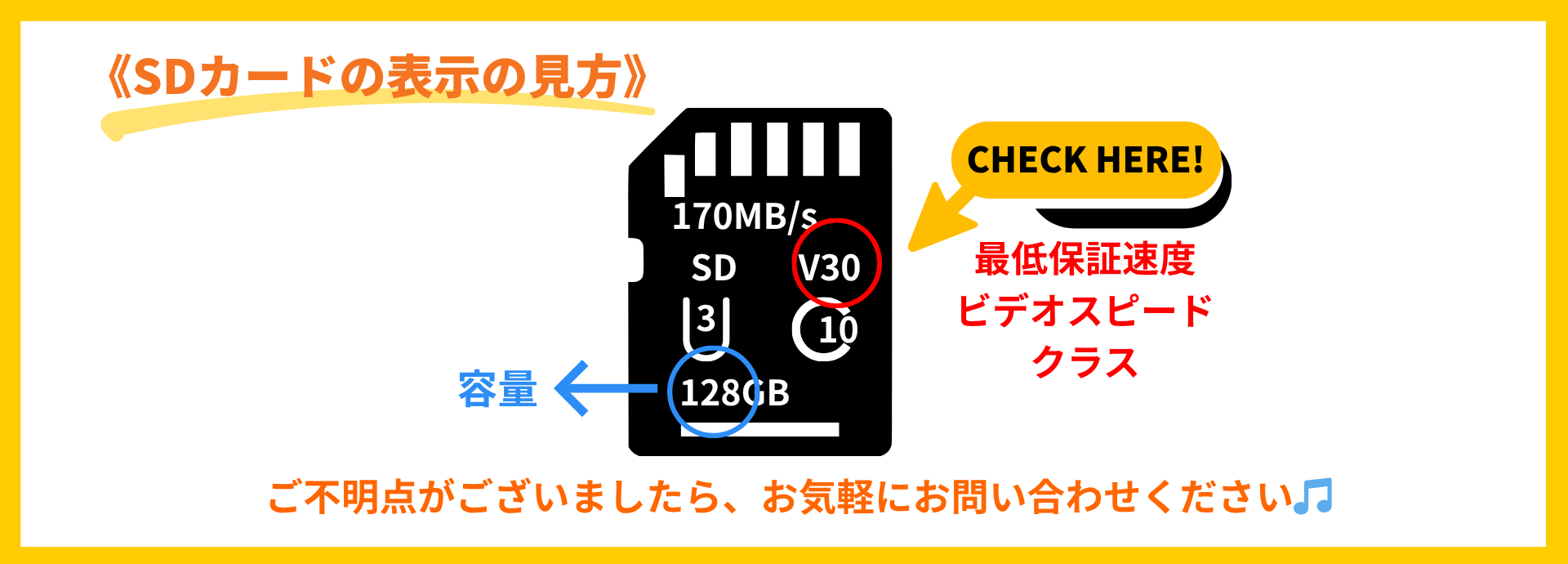 ・ご利用されるカメラ分(最大3台)の動画データを全てお帰りの際お持ち帰りできます。ビデオスピードクラスがV30以上のSDカードをお持ちください。